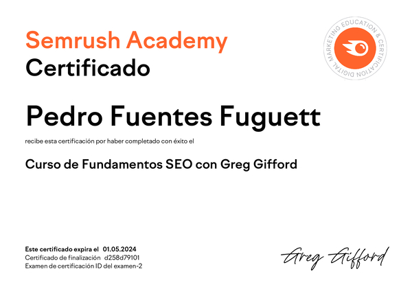 Validar credencial: https://static.semrush.com/academy/certificates/d258d79101/pedro-fuentes-fuguett_2.pdf